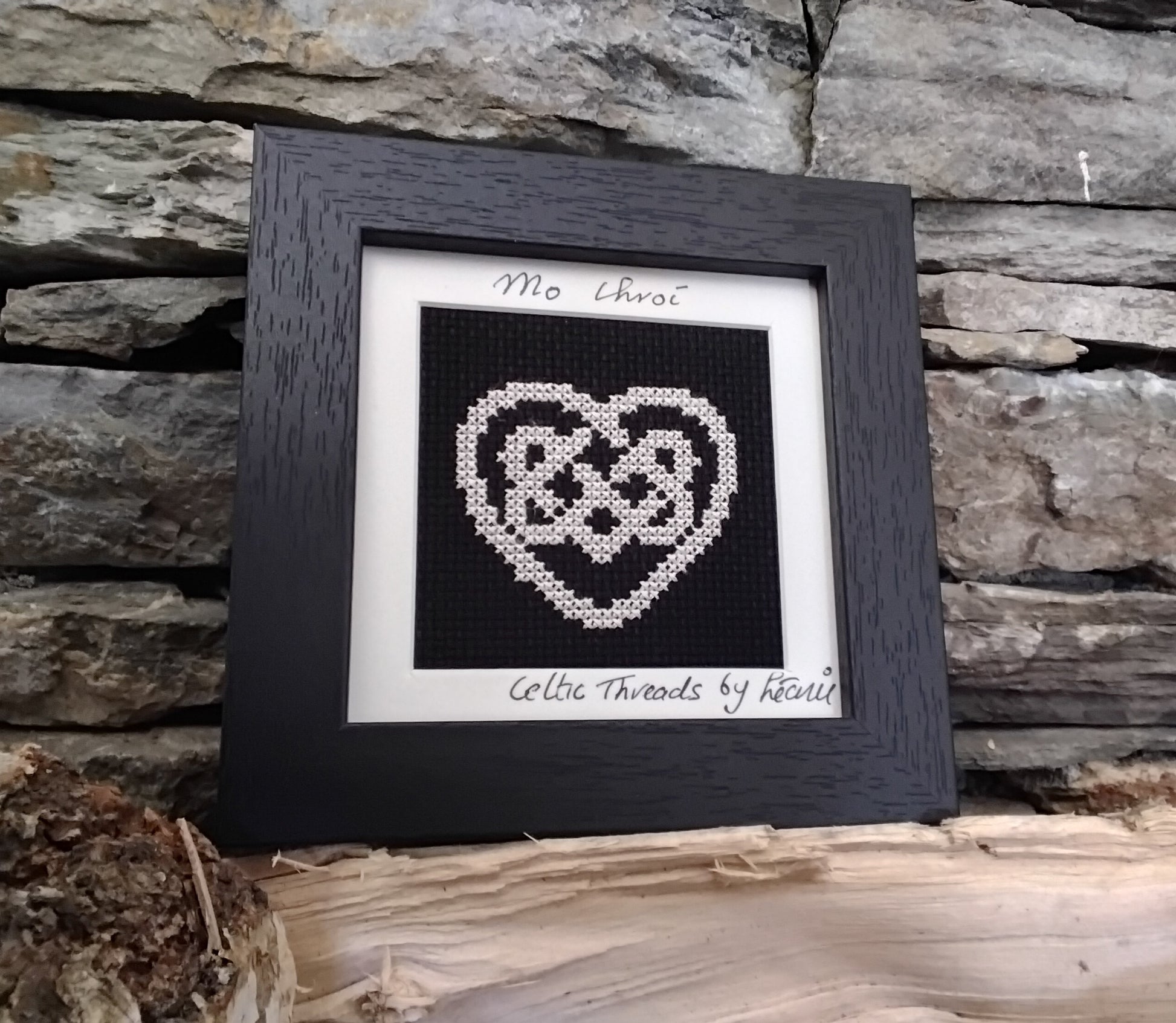 Mo Chroí means my heart in Irish, a phrase of deep love and devotion. This Celtic Cross stitch heart is inspired by that timeless sentiment, a symbol of affection and connection. It carries the spirit of heritage, love and care in every stitch.